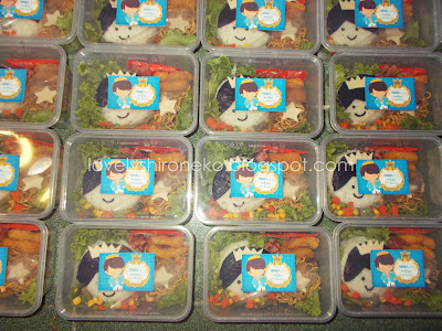Wadah bento gue beli di Toko Kue Aladin Pahoman dan sengaja beli yang bisa dipake lagi setelahnya. Itung-itung wadahnya sekalian dijadiin souvenir goodie bag. *emak